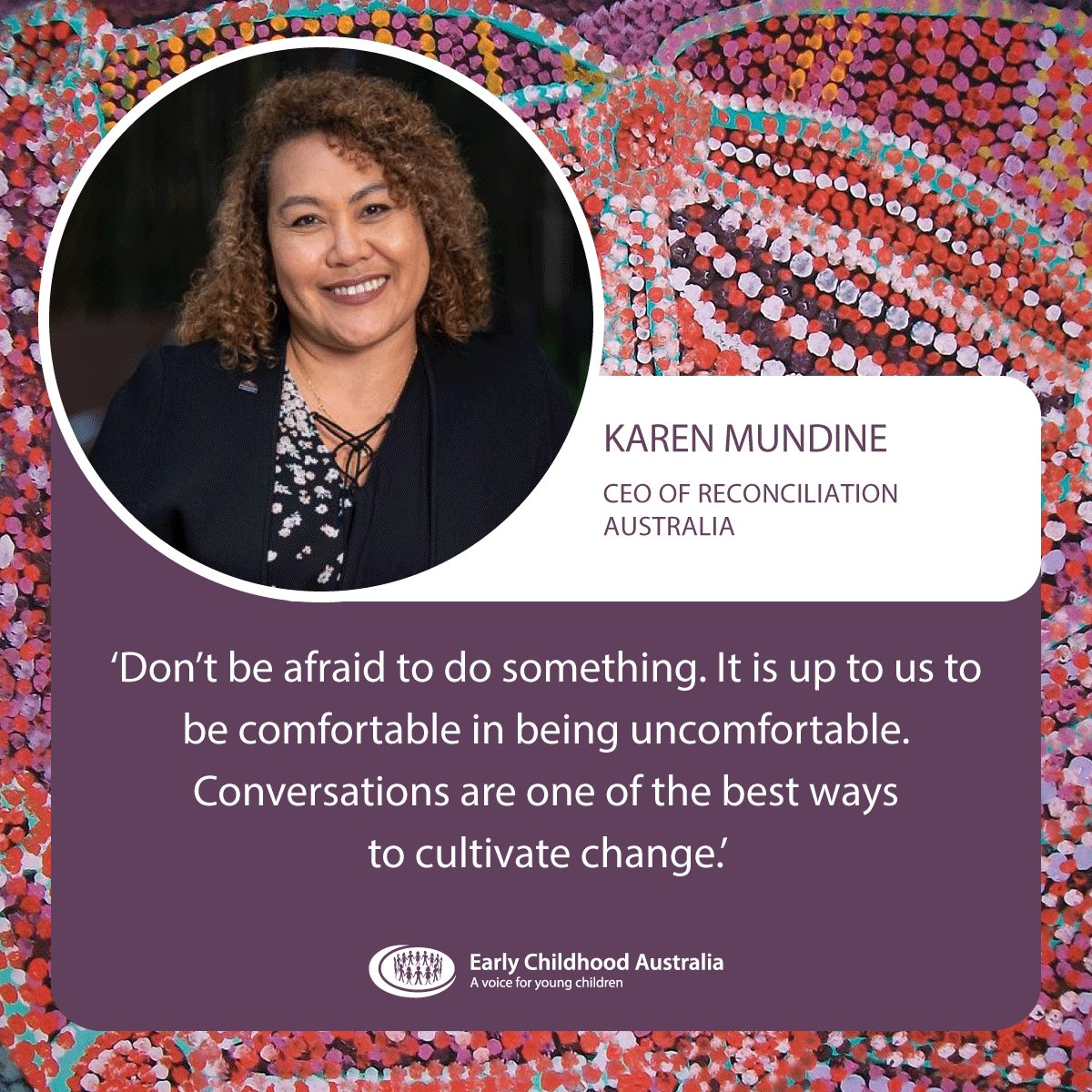 Reconciliation Australia’s CEO Karen Mundine gave a keynote address, calling for action in education towards authentic and brave reconciliation.
