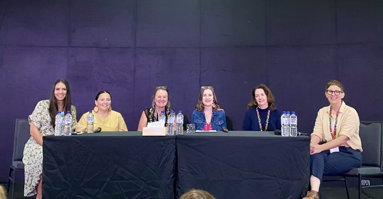Above: Alanna Raymond (Reconciliation Australia), Tammy Anderson (Briar Road Public School), Ann Slater (Balnarring Pre-School), Pamela Chatfield (Mosman Park Primary School), Bridget Jenkins (St Virgil’s College) and Tessa Keenan (Reconciliation Australia) on Day 2’s Narragunnawali: Reconciliation in Education Panel Discussion