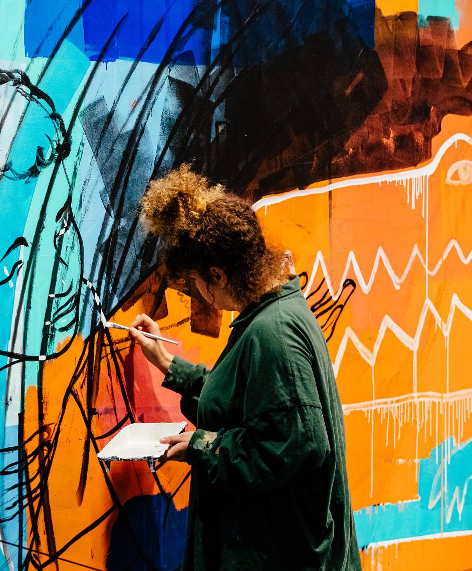 Over the years she has honed her skills in digital illustrations, drawings, painting, print making and film while also expanding her skills as a mural artist.