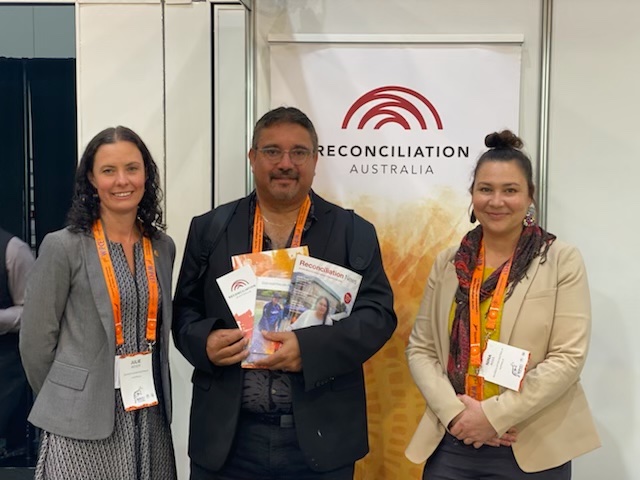 Julie Bover (Reconciliation Australia), Prof. Reuben Bolt (Deputy Vice-Chancellor First Nations Leadership, Charles Darwin University) and Nina Ross (Reconciliation Australia) at WIPCE