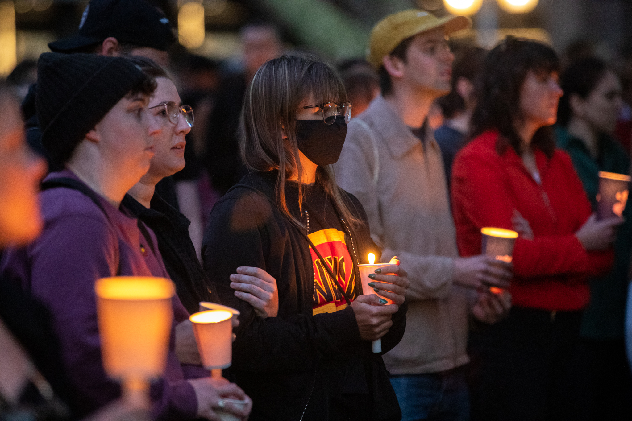 Attendees hold candles and listen to speakers at the vigil for Cassius Turvey in Sydney (Gadigal Country) on 2 November 2022. Photo: Joseph Mayers, supplied.