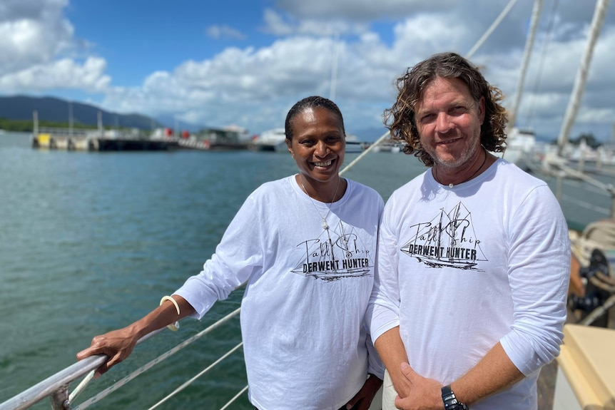 Saltwater club directors Mike Smith and Sonia Minniecon plan to use the ship for tourism, cultural education and reef care. (ABC Far North: Jemima Burt)